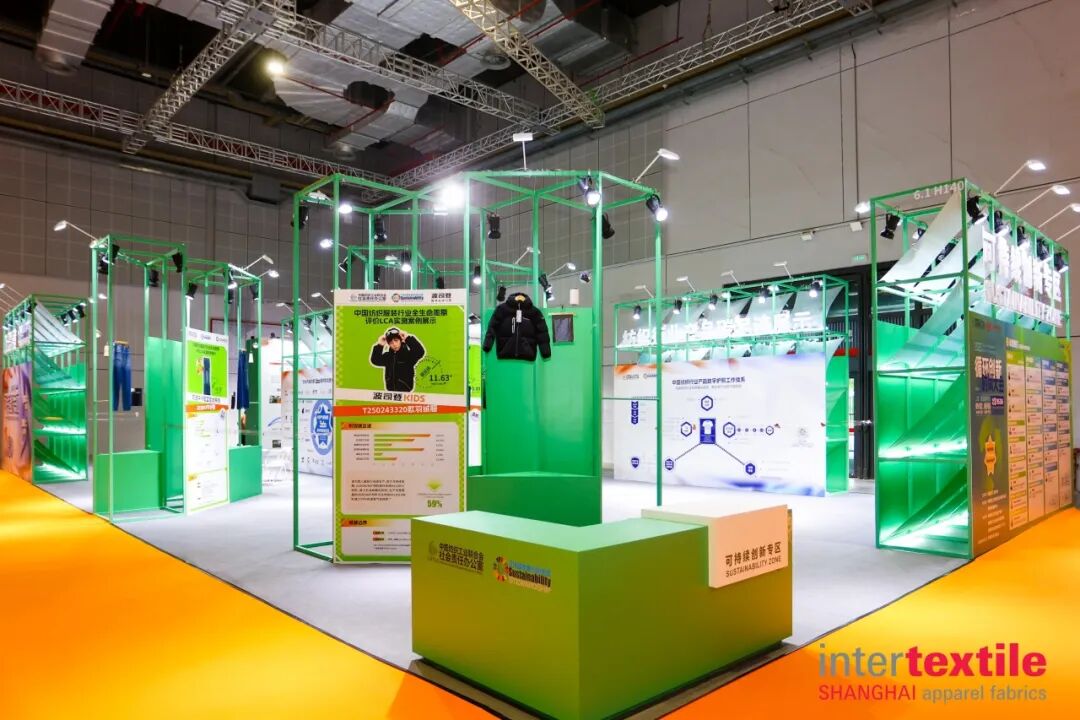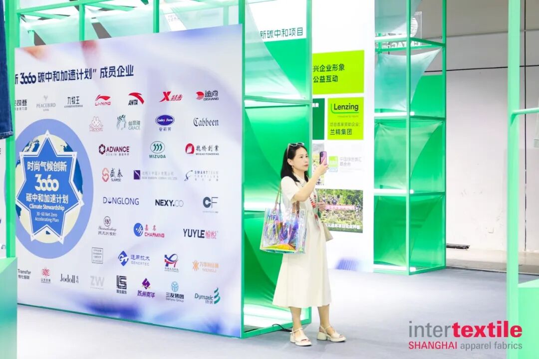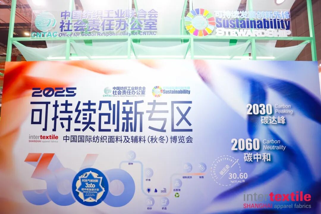现场可以看到,“可持续创新专区”“可持续发展专区”围绕纺织行业循环时尚,为全球可持续产品及解决方案供应商构建产业对话平台。其中,“可持续创新专区”以“锚定‘双碳’目标,驱动循环创新” 为设计理念,通过模块化展区布局,系统呈现纺织业在气候行动、碳足迹管理、数字追溯、碳中和林四大领域的前沿成果,让可持续理念从“概念”落地为可感知、可借鉴的实践方案。